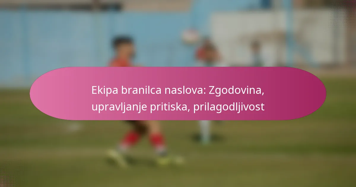 Ekipa branilca naslova obvladuje pritisk s kombinacijo tehnik mentalne odpornosti, učinkovitih trenerskih strategij in aktivnosti za povezovanje ekipe. Ti pristopi pomagajo igralcem ohranjati osredotočenost in prilagodljivost v situacijah z visokimi vložki, kar jim omogoča, da igrajo najbolje kljub težkemu bremenu pričakovanj.
